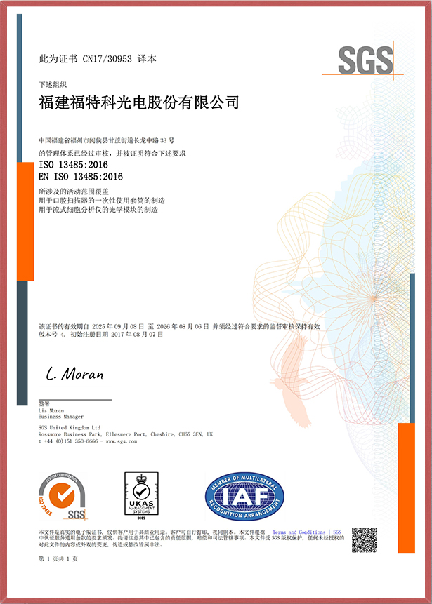 2017年通过了ISO13485 2020年通过了ISO45001